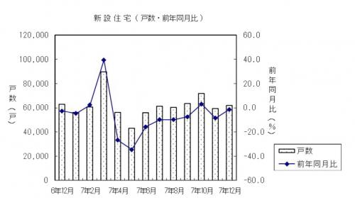 2025年12月の新築着工戸数 前年比8.5%減の5万9524戸