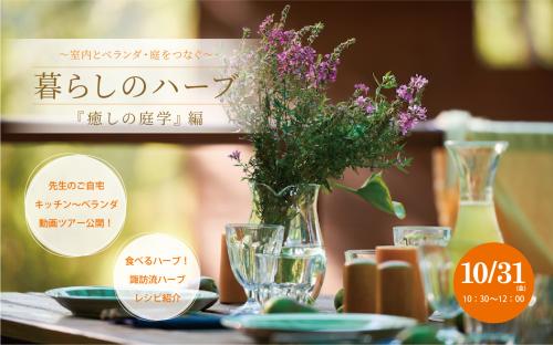 町田ひろ子アカデミーは、「室内とベランダ・庭をつなぐ」をテーマにしたオンライン講座「暮らしのハーブ『癒しの庭学』編」を、10月31日(金)10:30~12:00に開催する。