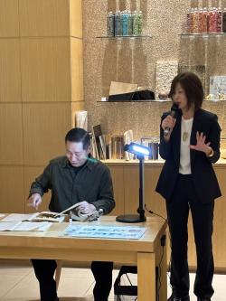 なお新製品発表会では、箔座の高岡社長、seccaの上町代表によるプレゼンテーションに加え、高岡製箔の箔打ち職人・太田武敏氏による縁付金箔の製造技を間近で見られるデモンストレーションも行われた。