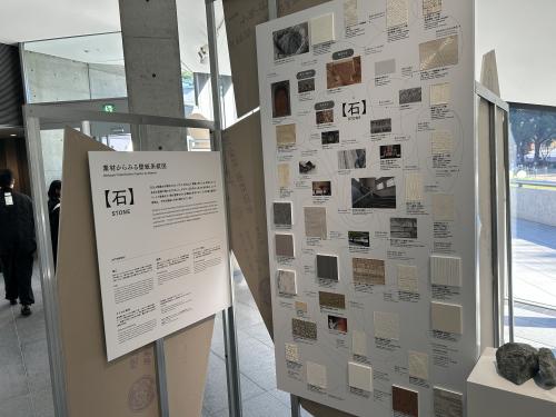 「これからの壁紙」エリアは、環境配慮・サステナブルが重視される昨今、土や炭、籾殻、木の皮、麻といった素材を活用した新しい壁紙の在り方を提示、「日本独自の壁紙見本帳」エリアでは、サンゲツが1960年代から発行してきた壁紙見本帳のページを抜き出してずらりと展示している。実物として4冊目に発刊した「織物壁紙見本帳」、初のビニル壁紙見本帳、赤い弾丸と呼ばれた名作見本帳が展示されている。
