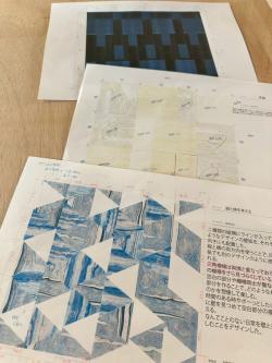 提出されたデザイン案(製作指示書)が左の写真である。いずれも壁紙をさまざまな形状にカットし、それを自由に組み合わせ、もともとの柄も活かしつつデザインしていくという、芸大の学生らしいとても斬新なアート作品となった。