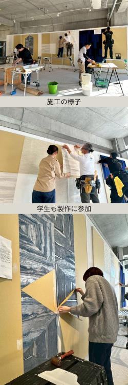 こうして出来上がった迫力ある3作品は、多くの学生たちの間で話題となり、作品とともに壁紙の魅力発信、そして内装仕上げ業の認知度向上につながった。