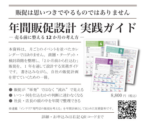 例えば、築3年以内の新興分譲地。見た目は整い、生活する世帯も若い。インテリア市場としては魅力的に映る。しかし実際には、大きな困りごとが顕在化していないケースが多く、まだ「買う理由」が発生していない。ここは「きれいなエリアだが食いつかない海」である。